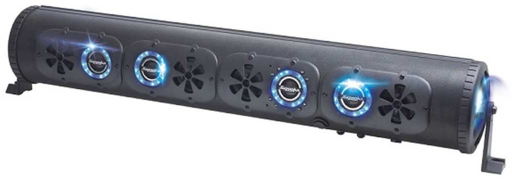 Next up on our list are none other than the banging speakers from Bazooka. This sound bar from Bazooka has a cool modern look, marine grade subwoofers, and LED lights to illuminate the system.
